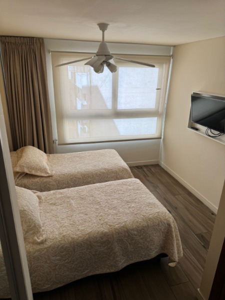 Excelente departamento de tres ambientes con balcón saliente, en alquiler por temporada en zona La Perla, perfecto para disfrutar la temporada con estilo, confort y privacidad. Cuenta con amplio living comedor, cocina totalmente equipada con heladera, cafetera y lavarropas, dormitorio principal con baño en suite, baño completo y dormitorio con dos camas individuales. Incluye ropa blanca. Apto para 3/4 personas.