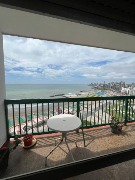Departamento de tres ambientes frente al mar, con vista panorámica y cochera, ubicado en el barrio La Perla. Cuenta con living comedor, cocina separada, toilette de recepción y baño completo con ducha. Dispone de dos dormitorios, el principal con salida al balcón y cama matrimonial, el otro con cama matrimonial y cucheta. Capacidad para 6 personas. Totalmente equipado. Cable y wifi