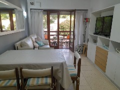 Departamento a una cuadra del mar, excelente ubicación ideal para 3 personas. Cuenta con calefactor, heladera con freezer, cocina, microondas, directv prepago.Habitación con cama matrimonial y 1 sillón cama.