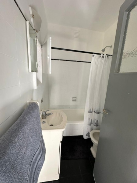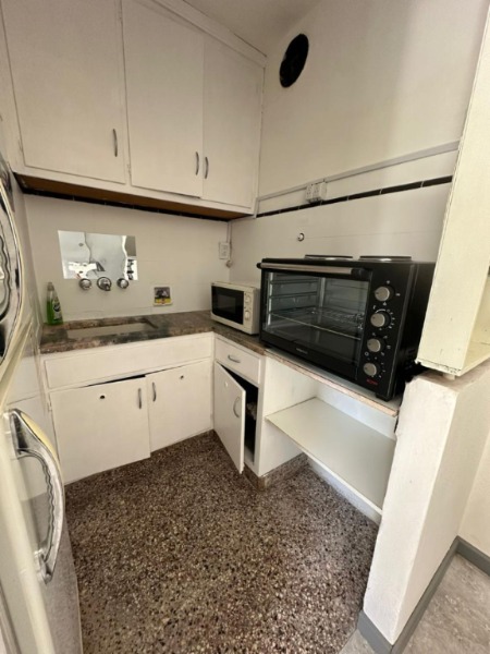 Monoambiente con cocina equipada y baño completo con bañera. Está ubicado en Bolívar y Corrientes. Se alquila amoblado, a persona sola