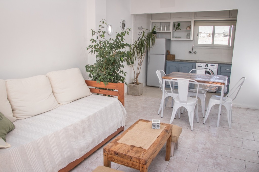 Departamento de tres ambientes en alquiler por temporada. Se encuentra en excelente ubicación, en Catamarca 711, en zona La Perla a pocos metros del mar. Está equipado para 3/4 personas. Cuenta con living comedor, cocina separada, baño completo y dos habitaciones, una con cama matrimonial y la otra con una cama individual.